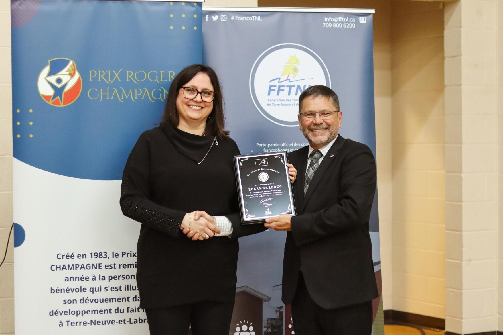 La FFTNL a également tenu à reconnaitre les 15 années de service de Madame Roxanne Leduc, au service de notre mouvement communautaire francophone provincial.