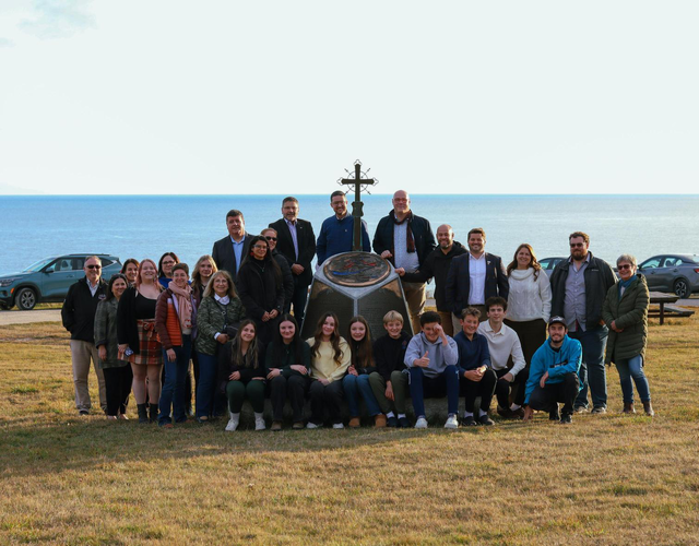 Photo de groupe au Monument de l'odyséée acadienne de Cap Saint-Georges.